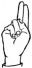 На ћирилици написано МИНА КОМАРНИЧКИ састоји се из 14 слова [?]. Исписано ћириличном једноручном азбуком за глувонеме: